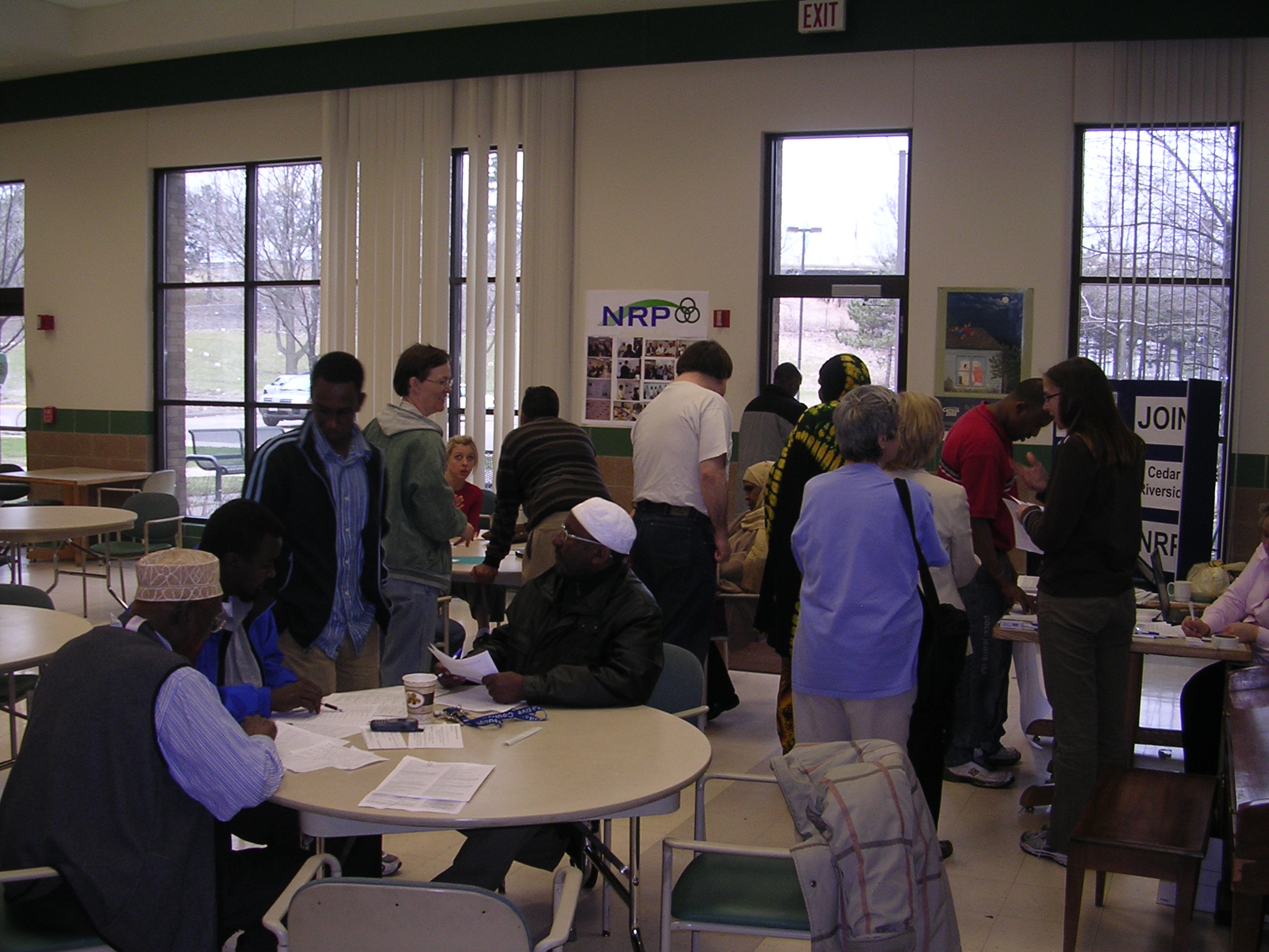 Cedar Riverside residents vote on their Phase 1 NRP Action Plan at the Brian Coyle Community Center. The Cedar Riverside NRP organized multiple balloting stations at many locations in the neighborhood over several days.